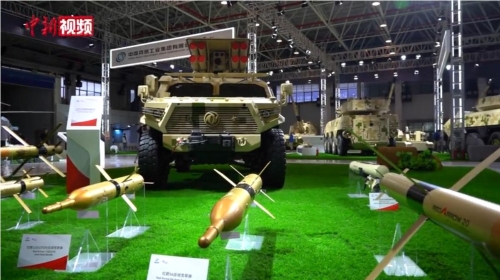 【解說】在第十四屆中國航展上,有一個展館主要展出的是坦克、裝甲車等地面裝備,叫作兵器館,這里同樣備受軍迷追捧。本屆航展,新型軍貿合成旅首次亮相,按照1+10+1的整體架構,進行布局展示。