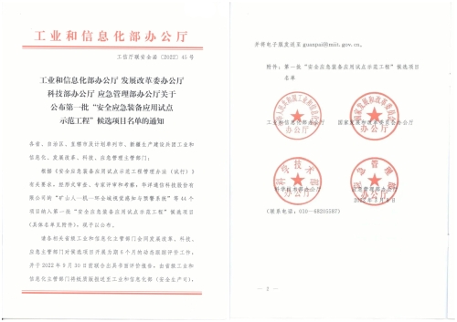 兵器工業集團兩家單位牽頭項目入選全國首批“安全應急裝備應用試點示范工程”候選項目 |